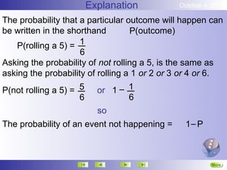 68. PROBABILITY - Calculating the chance of something not happening ...