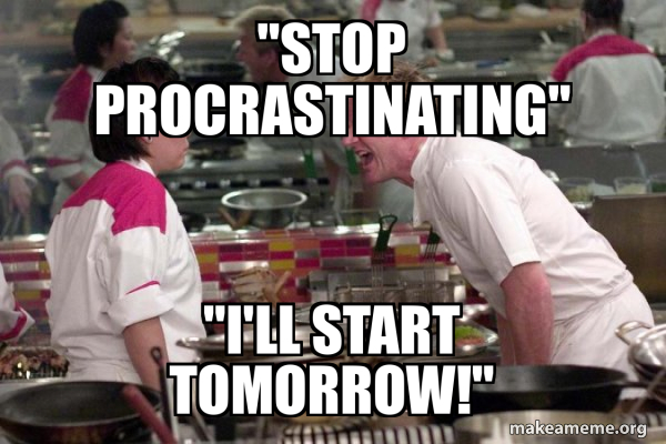 "STOP PROCRASTINATING" "I'll start tomorrow!" - Gordon Ramsay Meme ...
