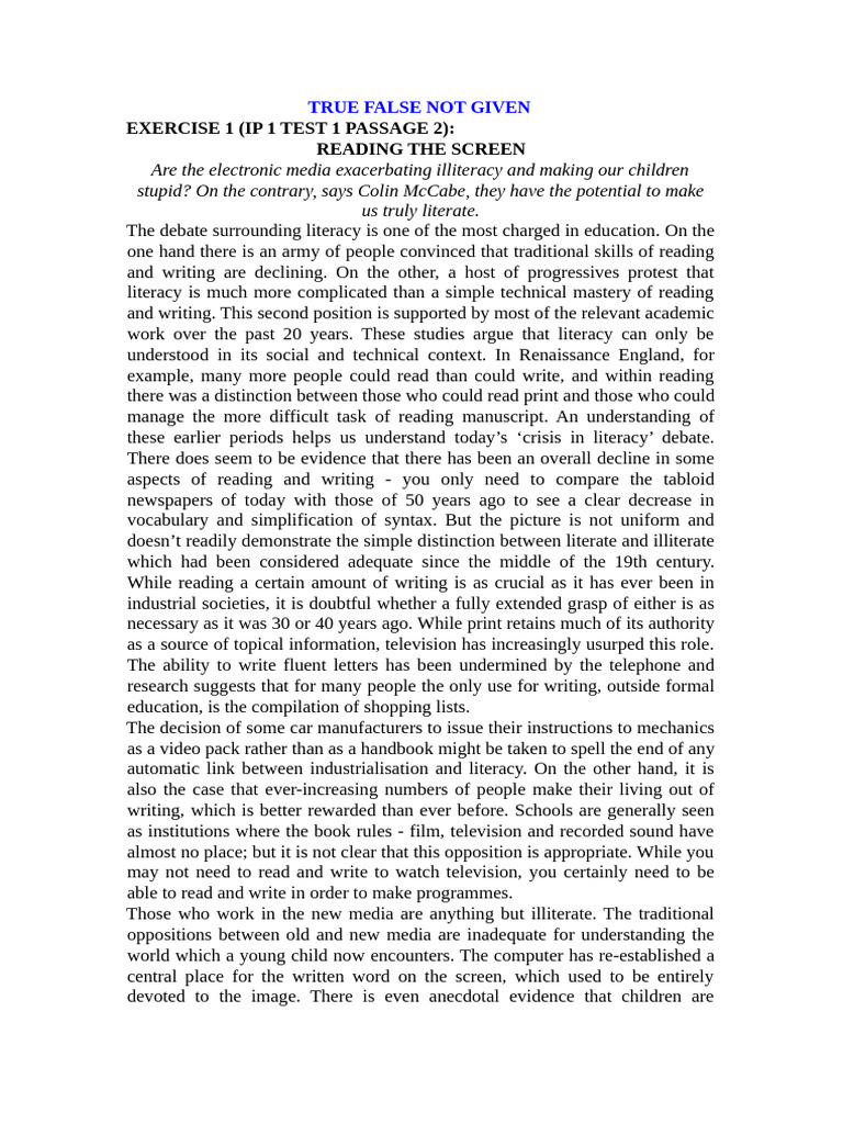 TRUE-FALSE-NOT-GIVEN Example Exams | PDF | Literacy | Intelligence