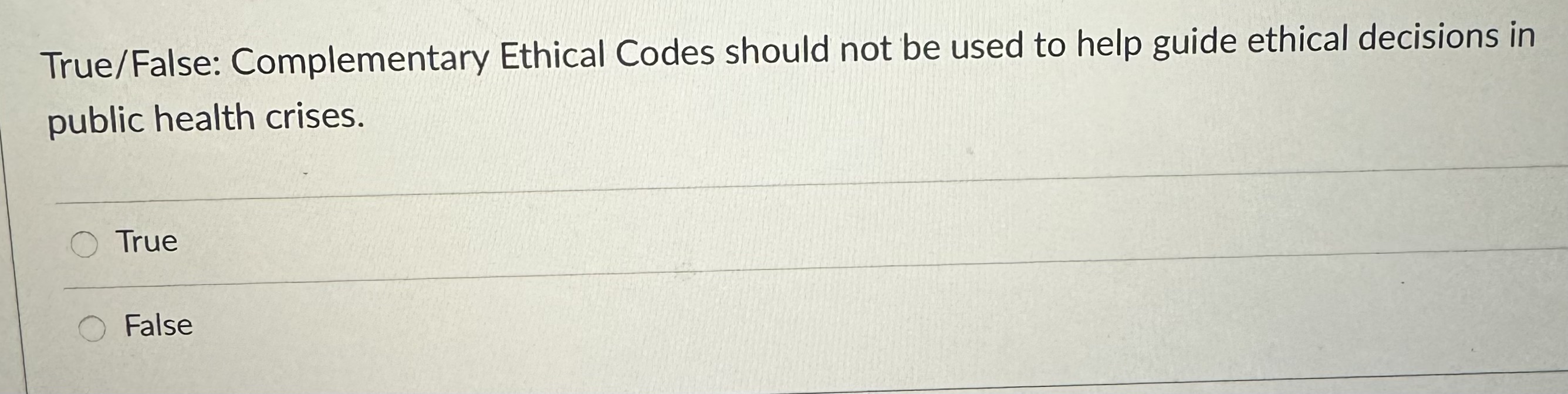 Solved True/False: Complementary Ethical Codes should not be | Chegg.com