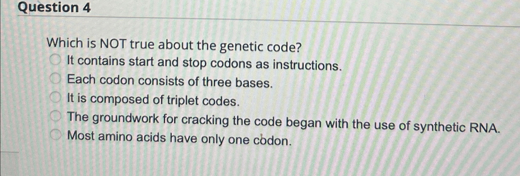 Solved Question 4Which is NOT true about the genetic code?It | Chegg.com