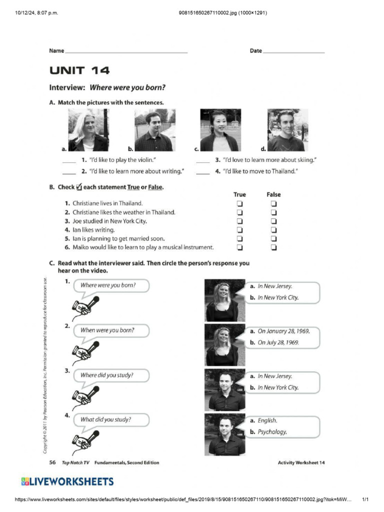 Interview - Unit 14 - Top Notch Fundamentals | PDF