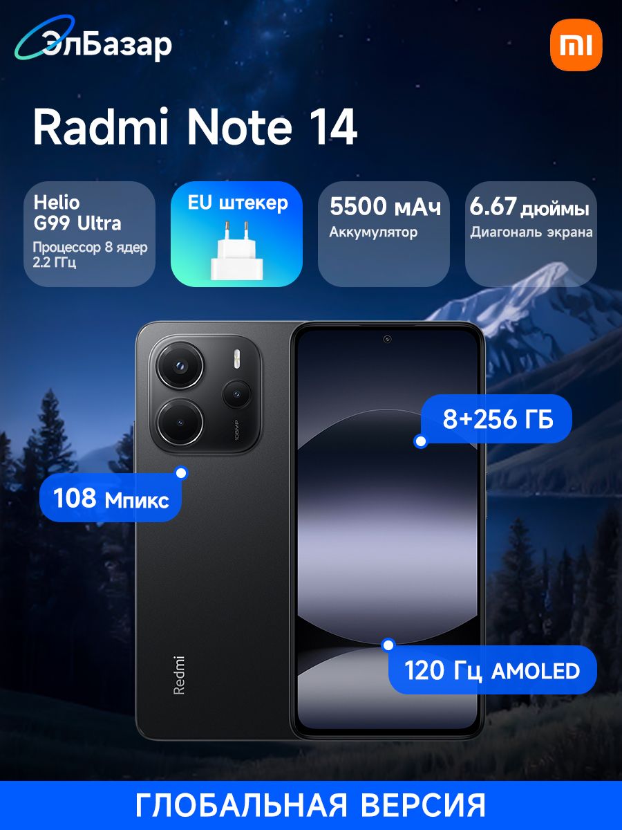 Смартфон Xiaomi Note 14 4g 256 ГБ 8 ГБ Серый 6.67 OLED/AMOLED Note 14 ...
