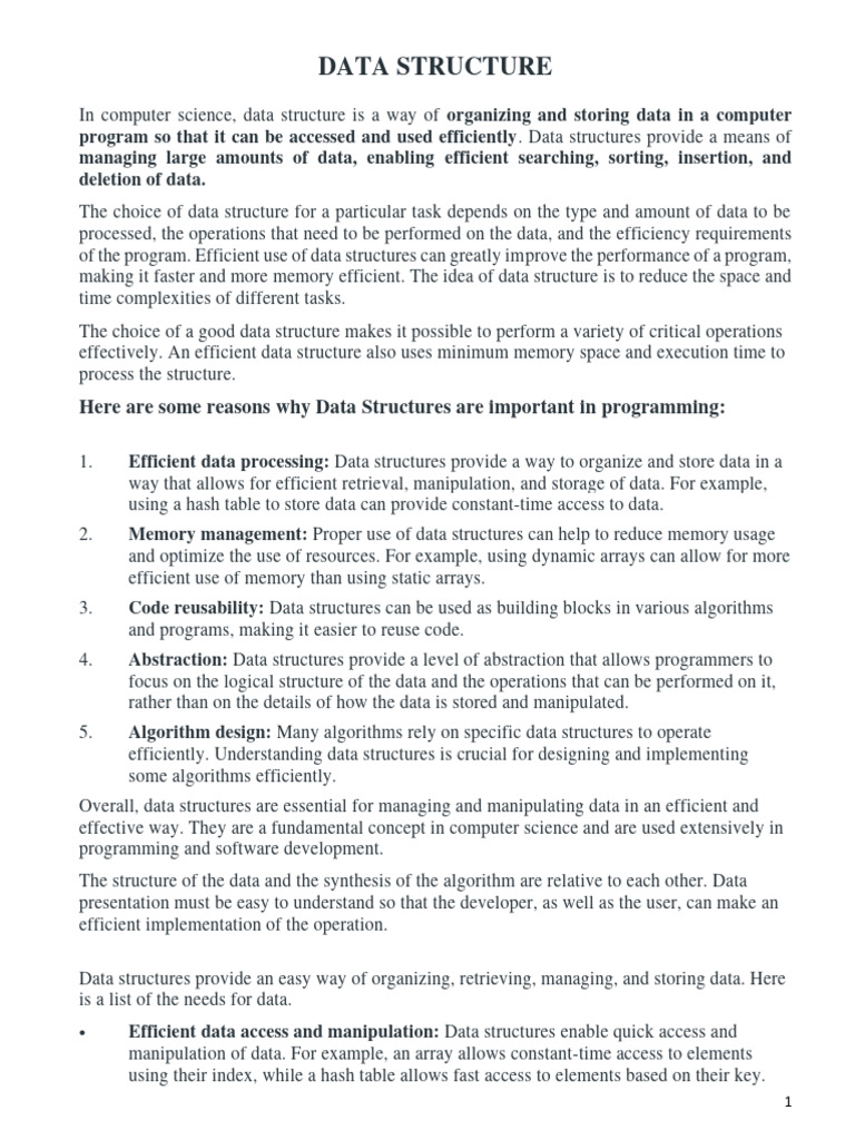 Data structure notes - Data Structures - Studocu