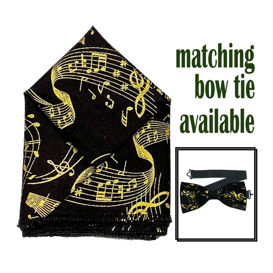 Treble Clef Music Note Bow Tie & Pocket Square Perfect Accessory for ...