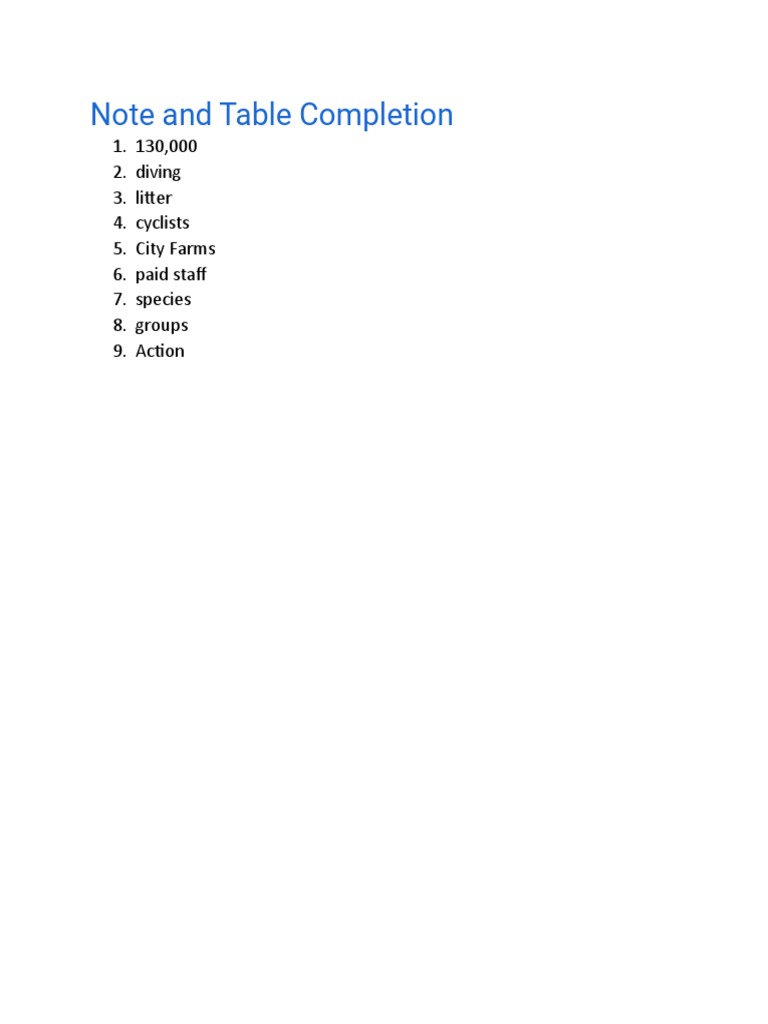 Note and Sentence Completion | PDF