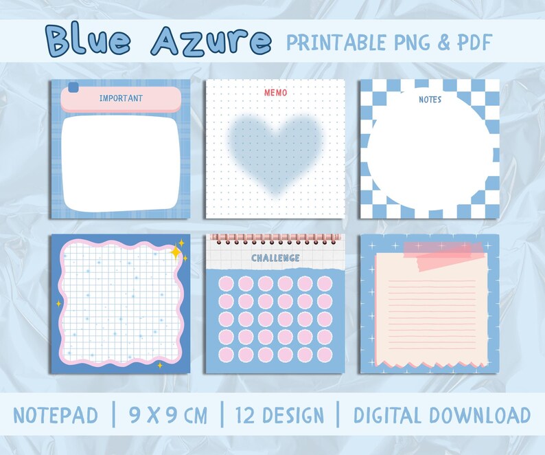 Blue Azure Notepad, 12 Designs, Printable Memo Sheets (PDF, PNG) - Etsy