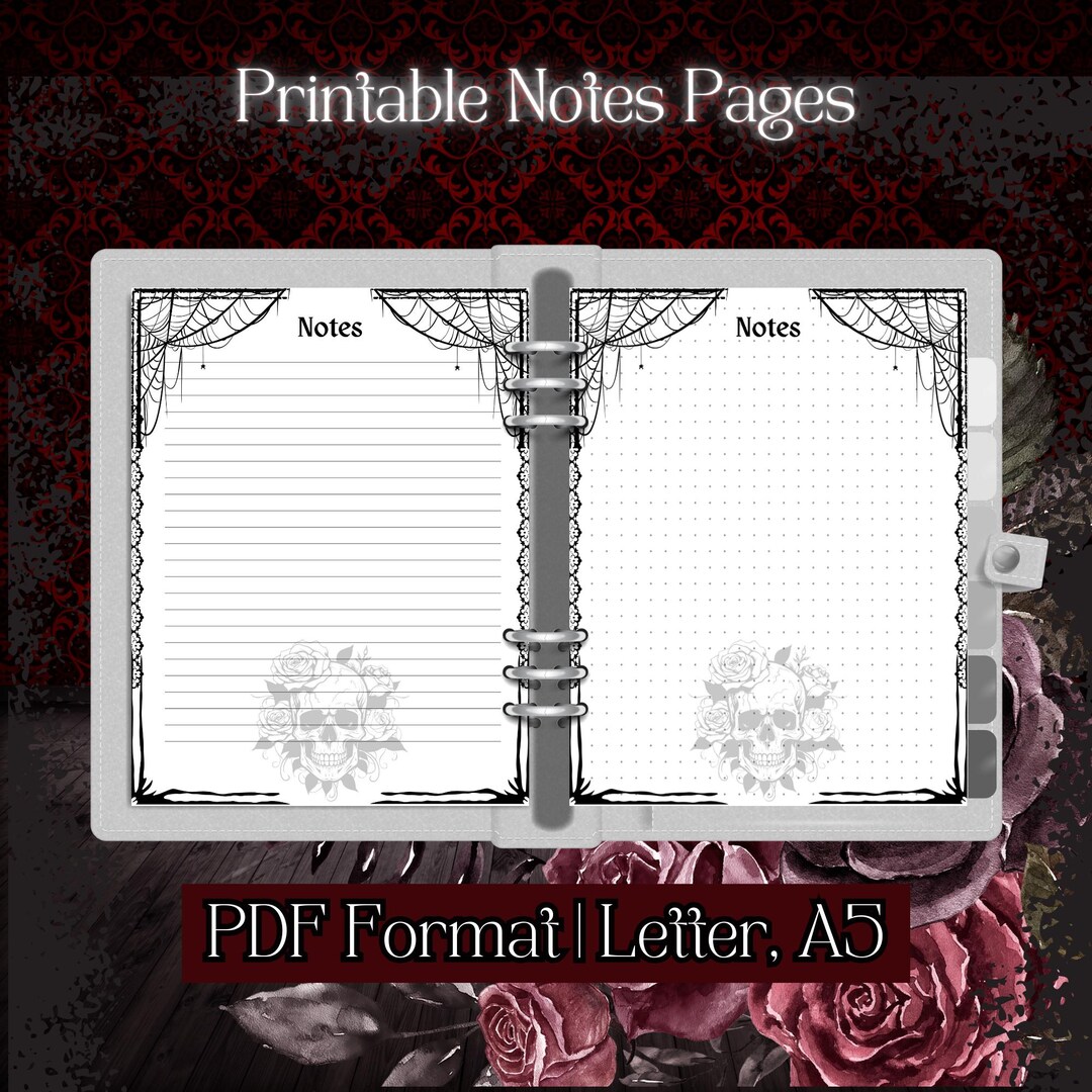 Goth Themed Notes Page | Lined, Dotted, and Blank | A5 & Letter Size ...