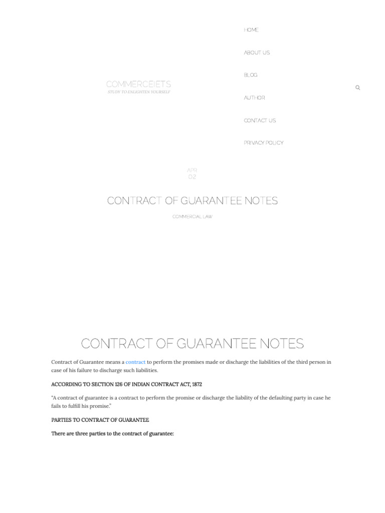 Contract of Guarantee Notes - Commerceiets | PDF
