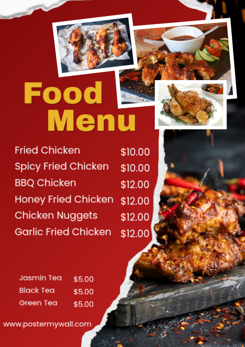 Plantilla de Red List-based Food Menu A4 | PosterMyWall