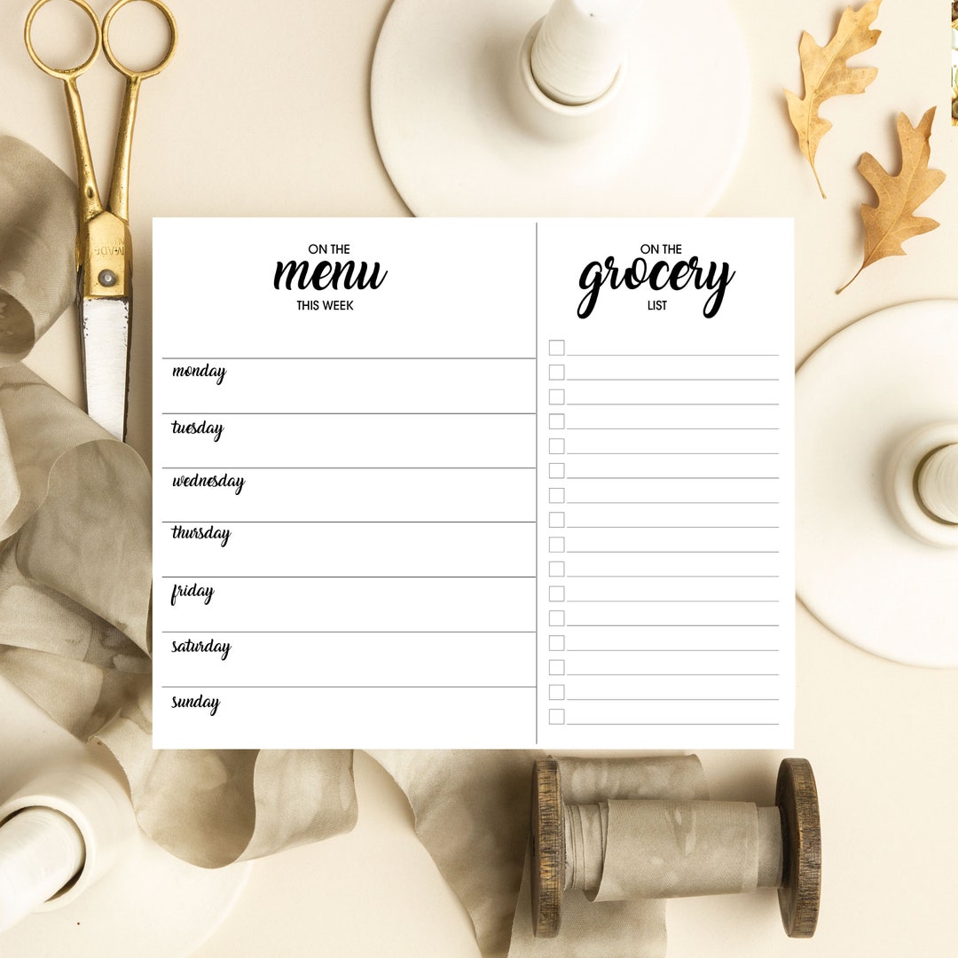 Weekly Menu/grocery List Notepad, Weekly Menu and Grocery List Planner ...