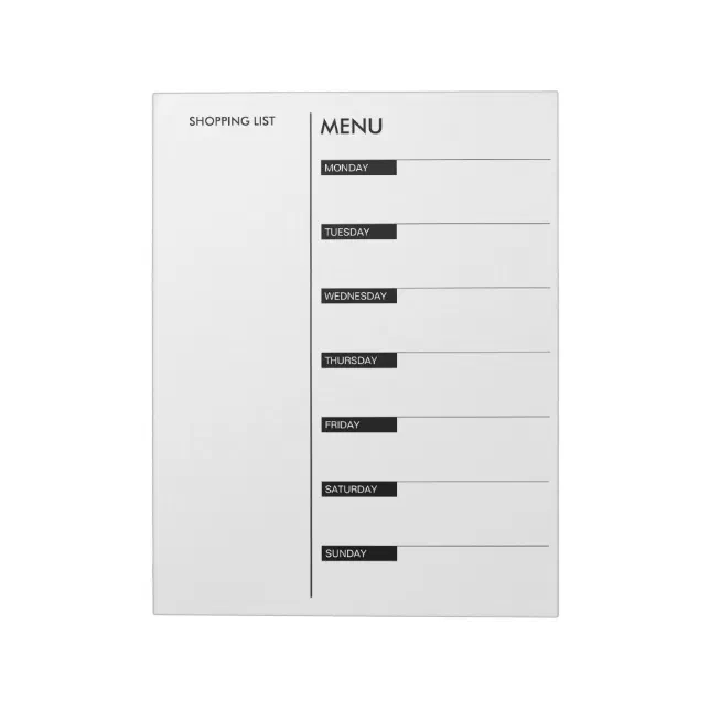 Daily Menu and Shopping List Notepad | Zazzle