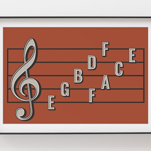 Treble Clef Note Names Poster Music Lesson Print Cream | Etsy
