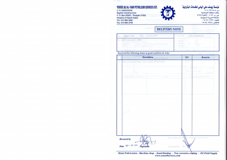 6 in pipe delivery note | PDF
