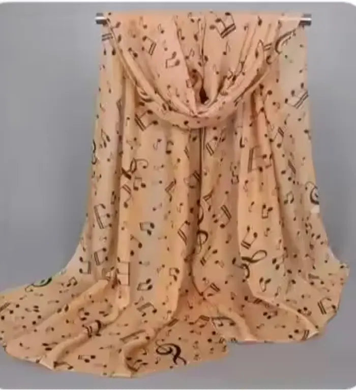 Scarf Caramel Colour with Brown Notes and Clefs — The Sydney String Centre