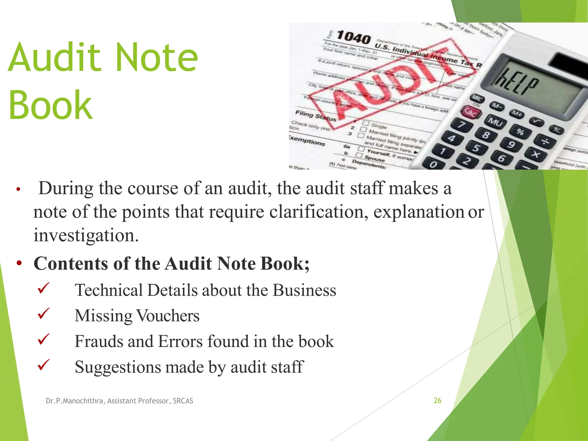 SOLUTION: Auditing audit note book contents of audit note book ...