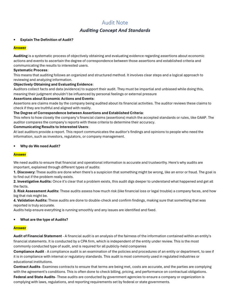 Audit Notes: Definition, Purpose, and Types of Auditing - Studocu