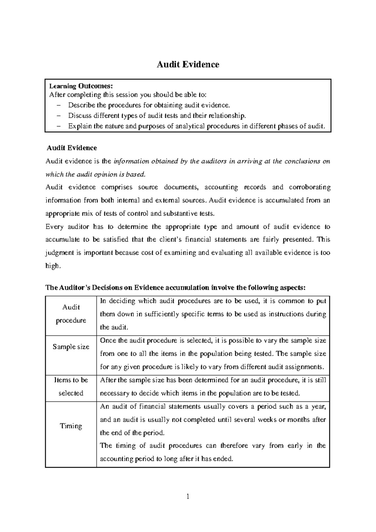 Audit Evidence - Audit Evidence Learning Outcomes: After completing ...