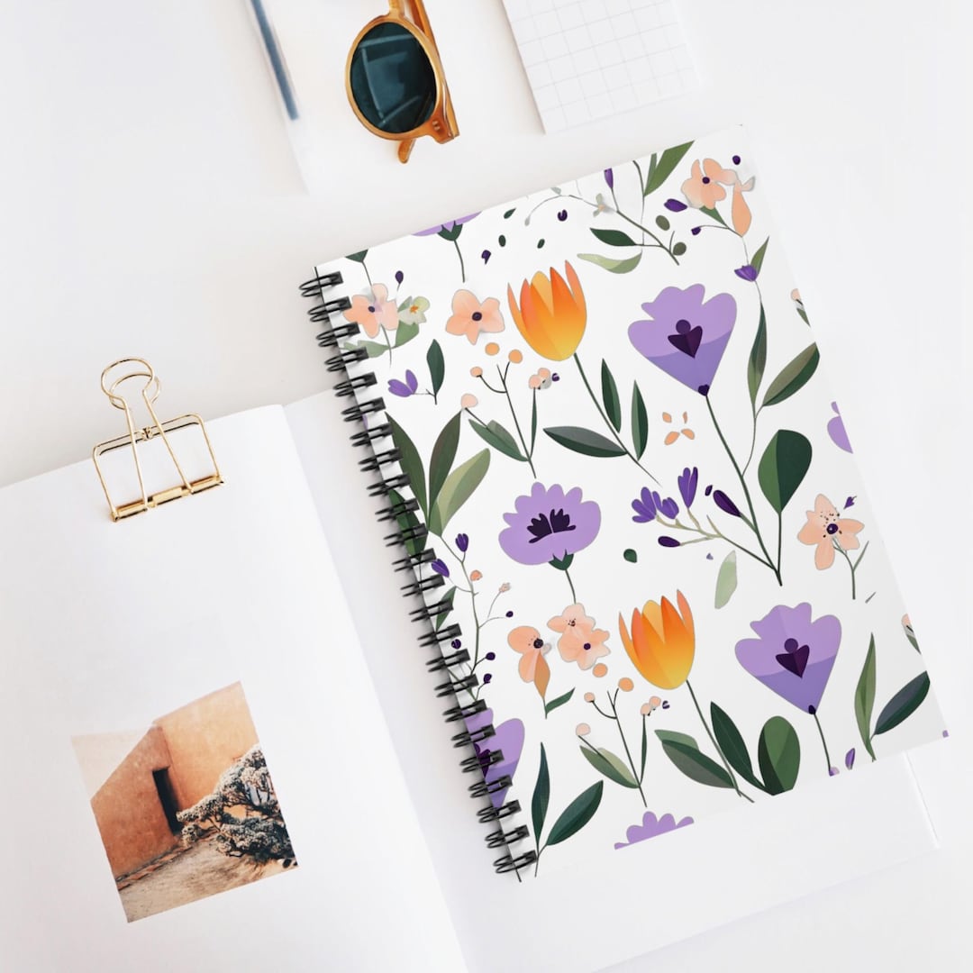 Floral Spiral Notebook, Flower Pattern Journal, Ruled Line Notebook - Etsy