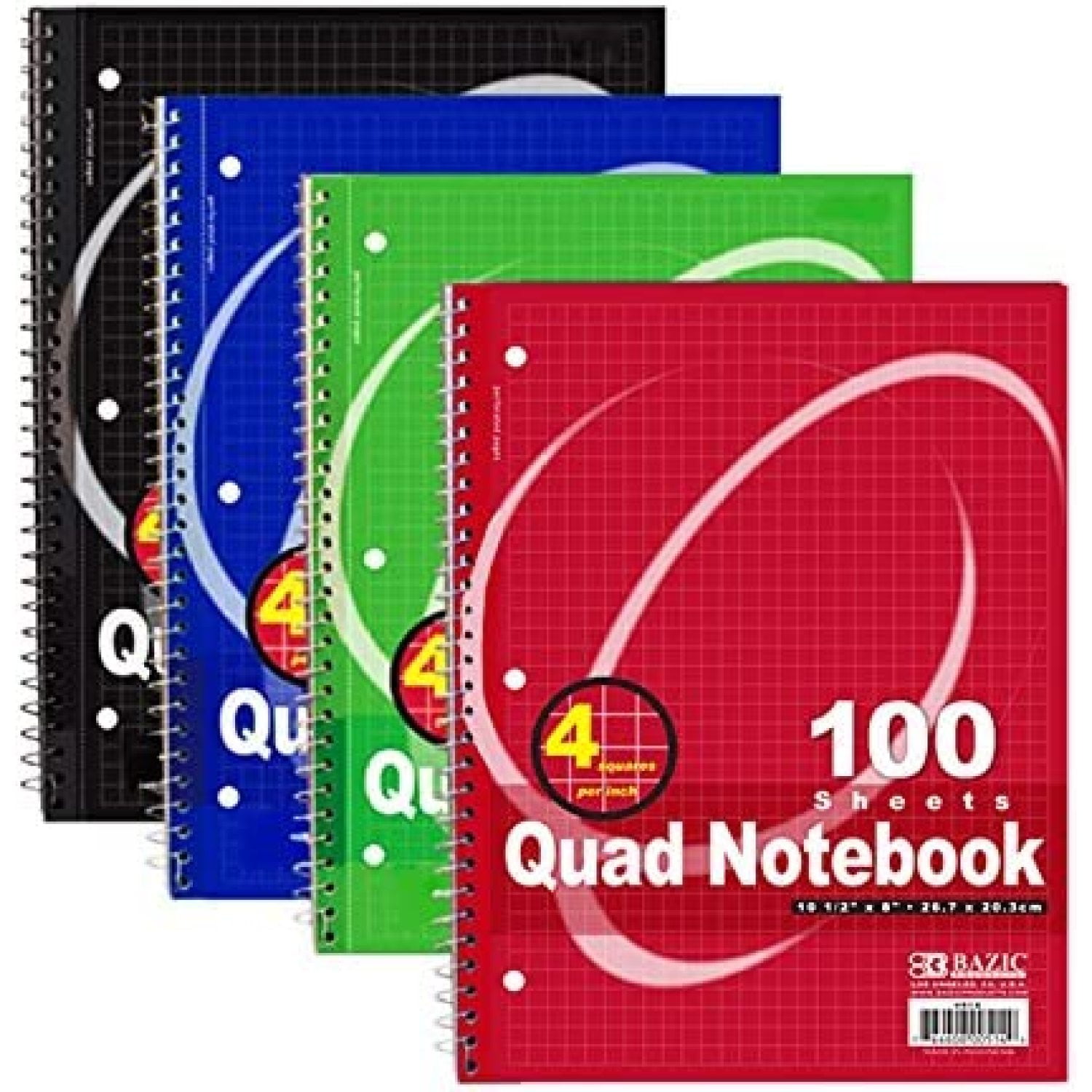 4/pack Quad-ruled Spiral Notebook 10-1/2 X 8 Inches, Assorted Colors ...