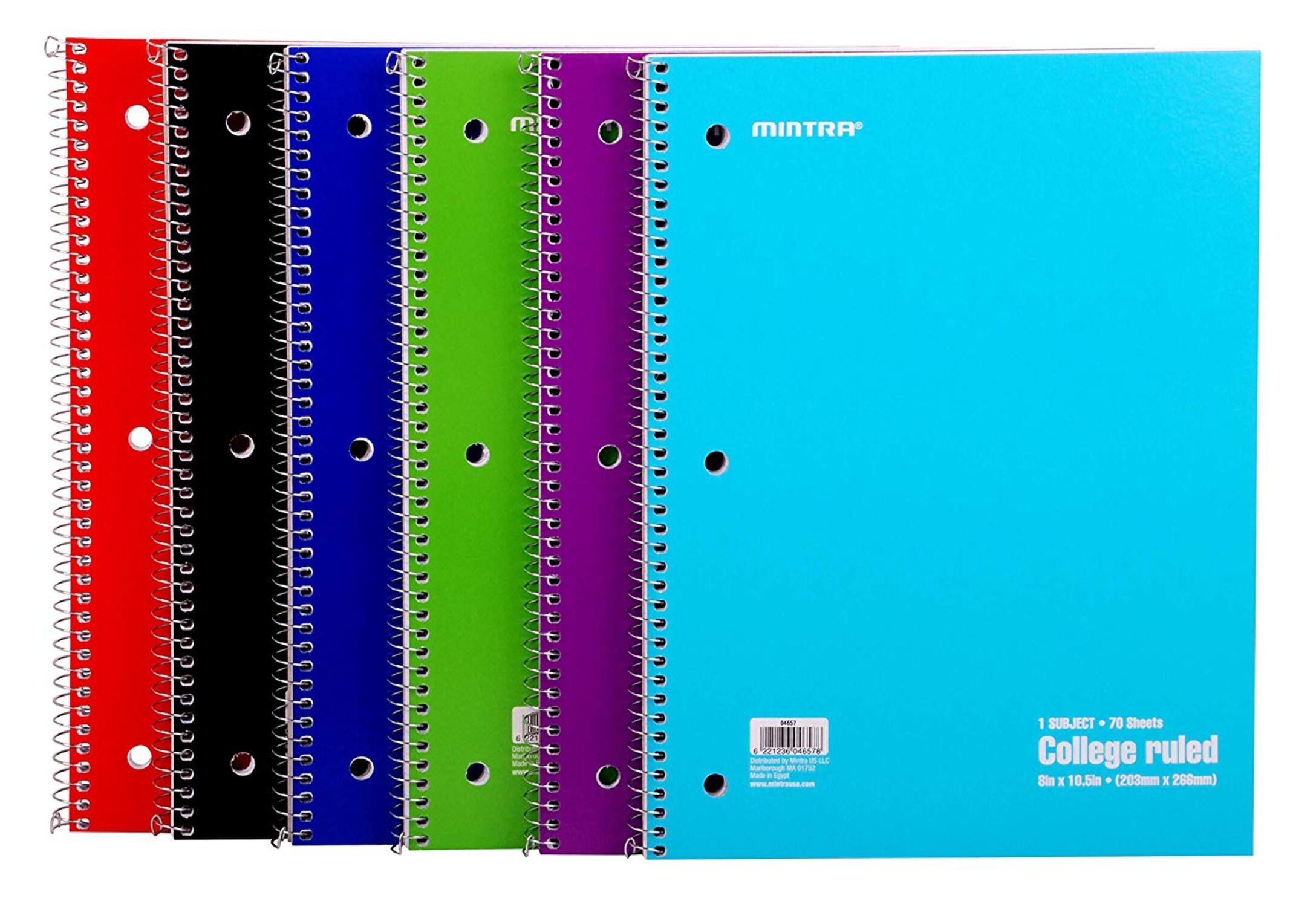 Mintra Office Spiral-Bound Notebook - Solid, 70 Sheets, 6 Pack, 3 Hole ...