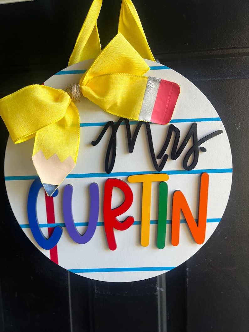 Notebook Paper Personalized Teacher Sign - Designs by Dina