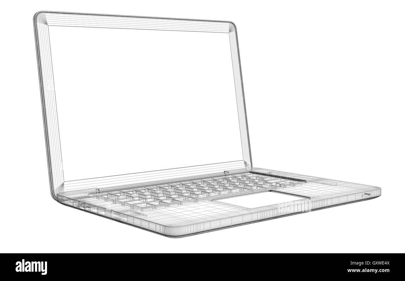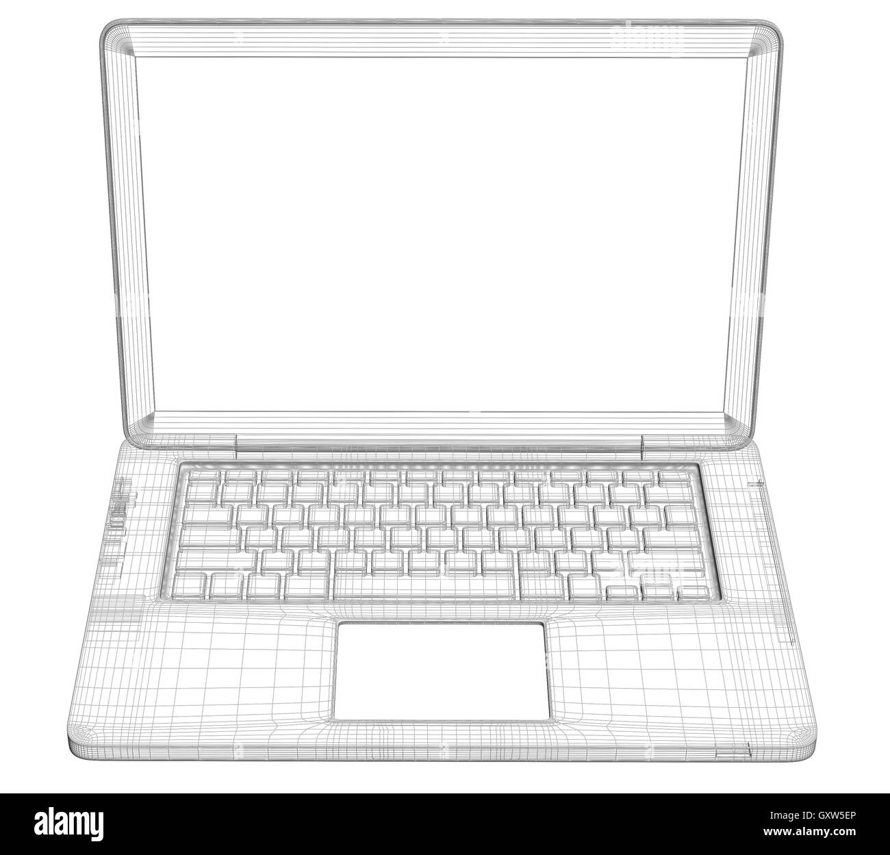 Laptop. Wire frame. Isolated render on a white background Stock Photo ...