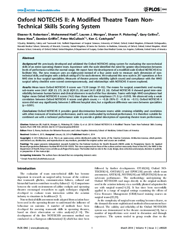 (PDF) Reliability of a revised NOTECHS scale for use in surgical teams