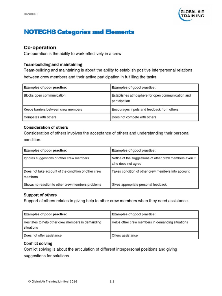 NOTECHS Framework for Crew Skills | PDF | Risk | Psychology