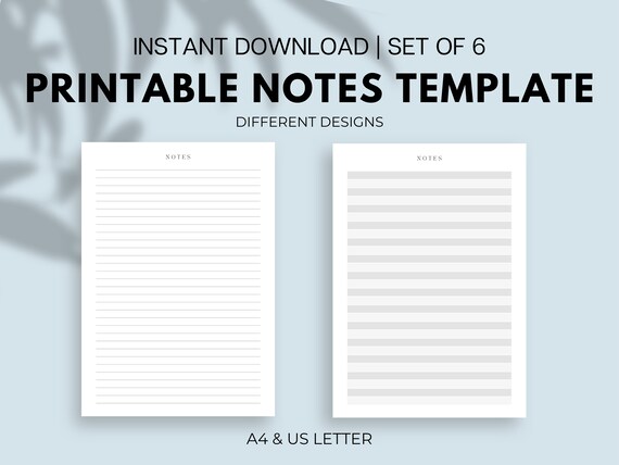 Printable Notes Paper Template | Set of 6 | Different Layouts | Instant ...