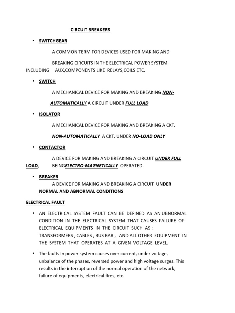 Short Noteon CB | PDF | Electric Arc | Electric Power