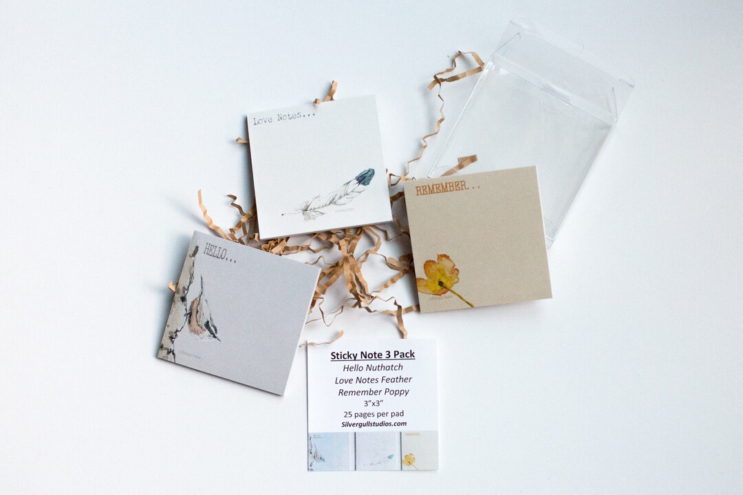 3x3 Sticky Notepad Variety 3-pack, Original Watercolor Artwork - Etsy