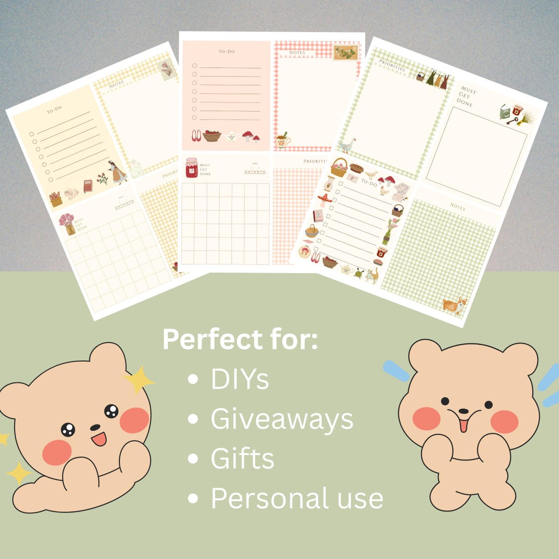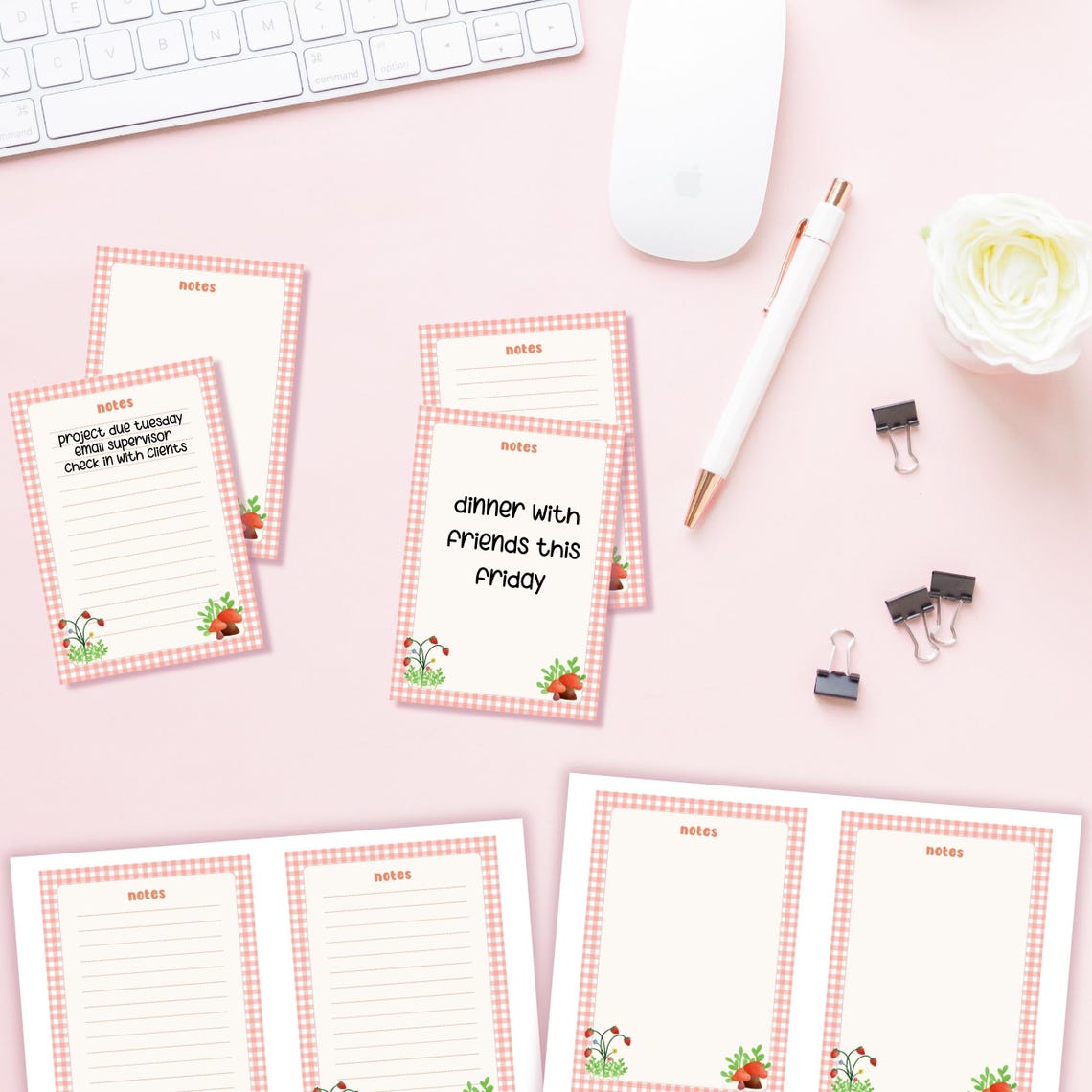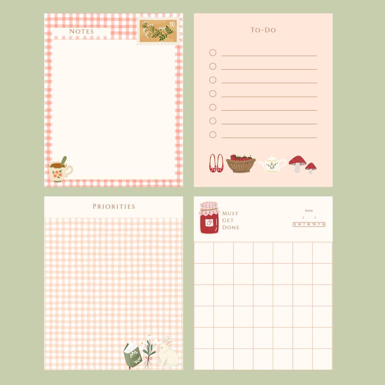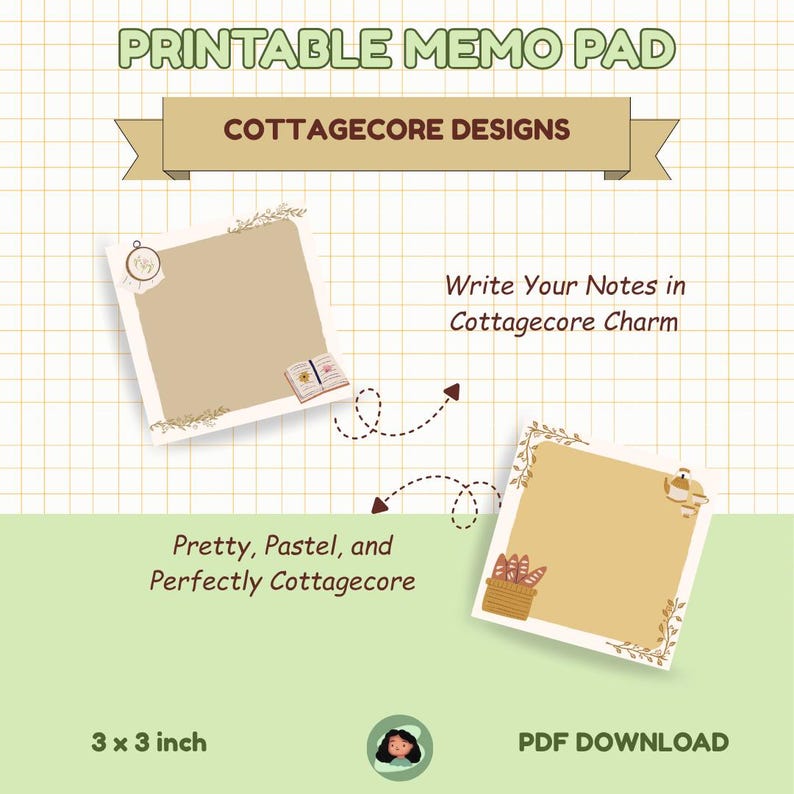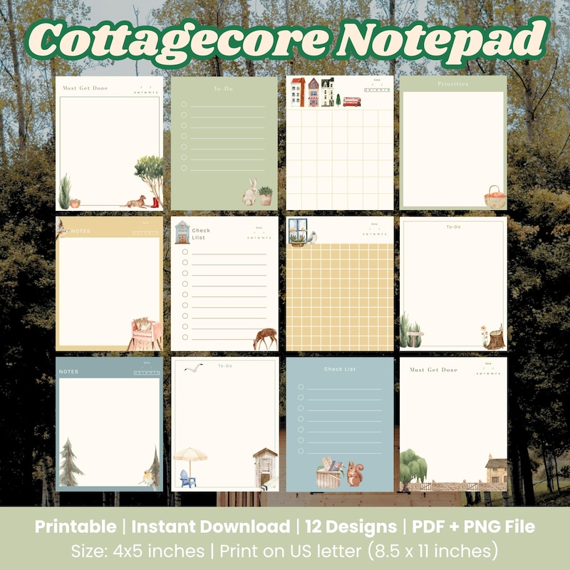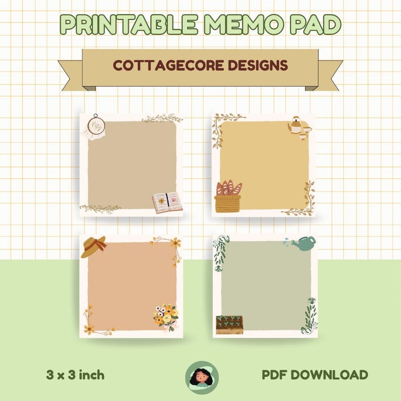 4 Designs Cottage Core Theme Printable Notepad 3x3 Inch Digital ...