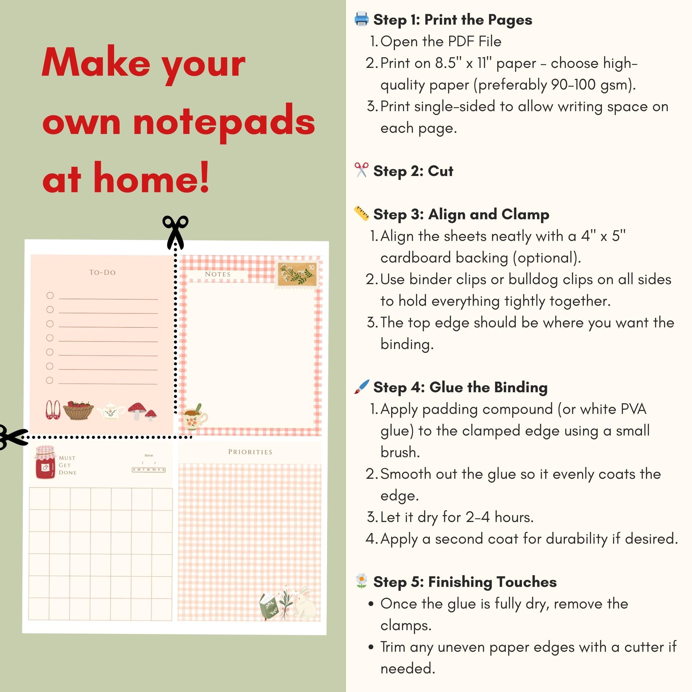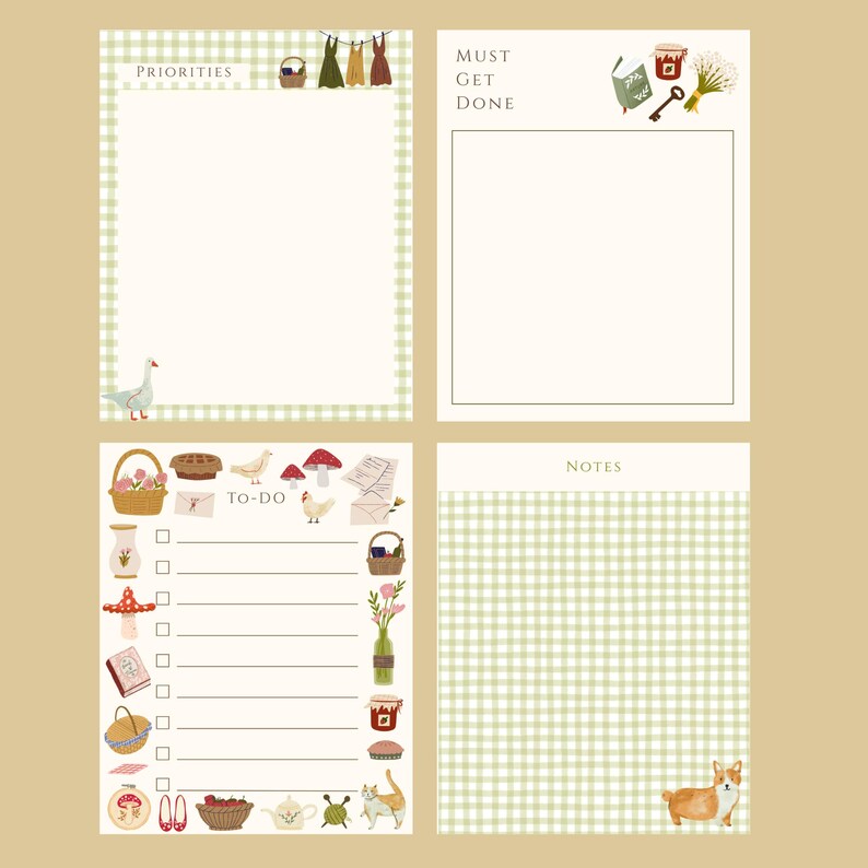 Cute Cottagecore Notepad, Daily Tasks Notepad, Cottage Theme Stationary ...