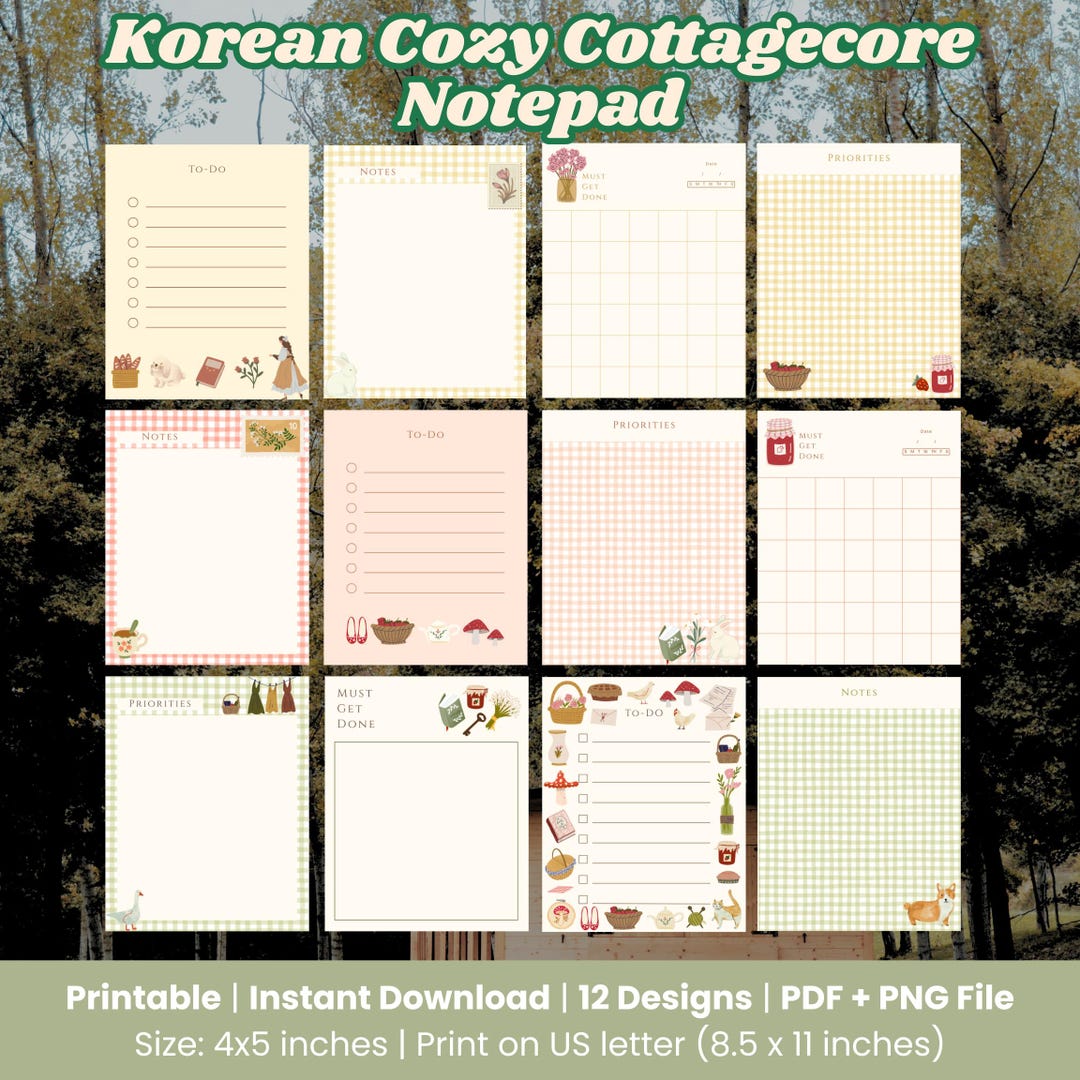 Korean Cottagecore Notepad: Printable Memo Sheets (PDF Download, 4x5 In ...