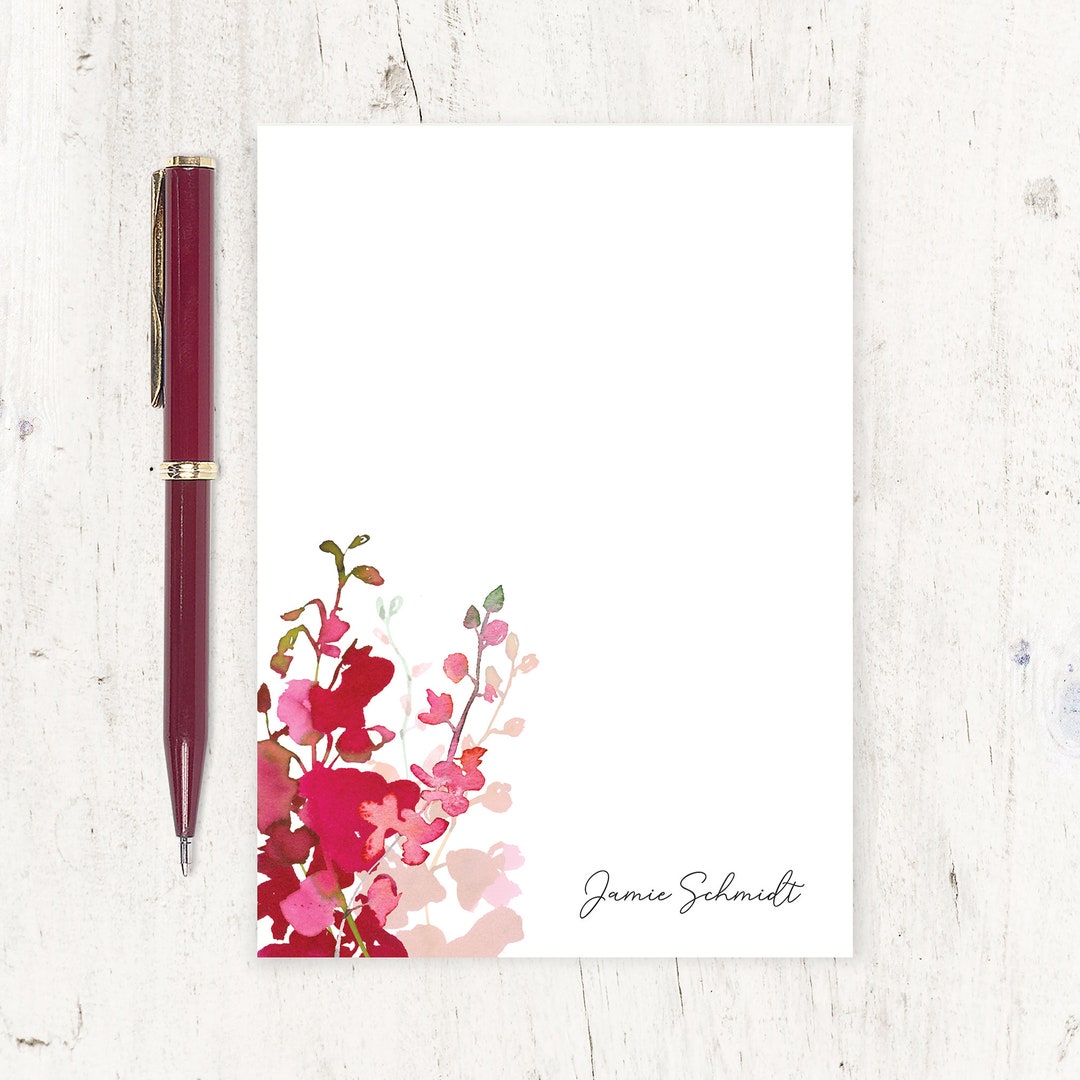 Personalized Notepad - RED WATERCOLOR ORCHID - Personalized Stationary ...