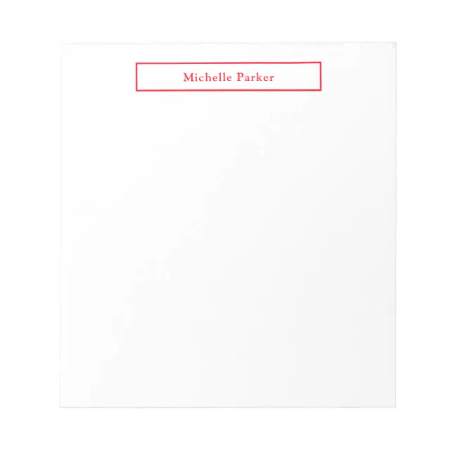 Red White Bold Name Plain Professional Modern Notepad | Zazzle
