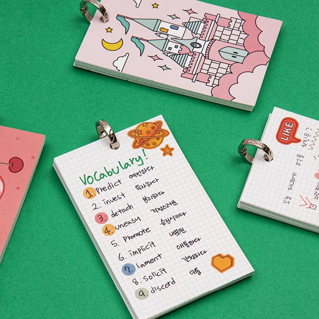 𝟖𝟎 𝐒𝐇𝐄𝐄𝐓𝐒 Cute Cartoon Flash Cards Notepad Ring Binder Portable DIY ...