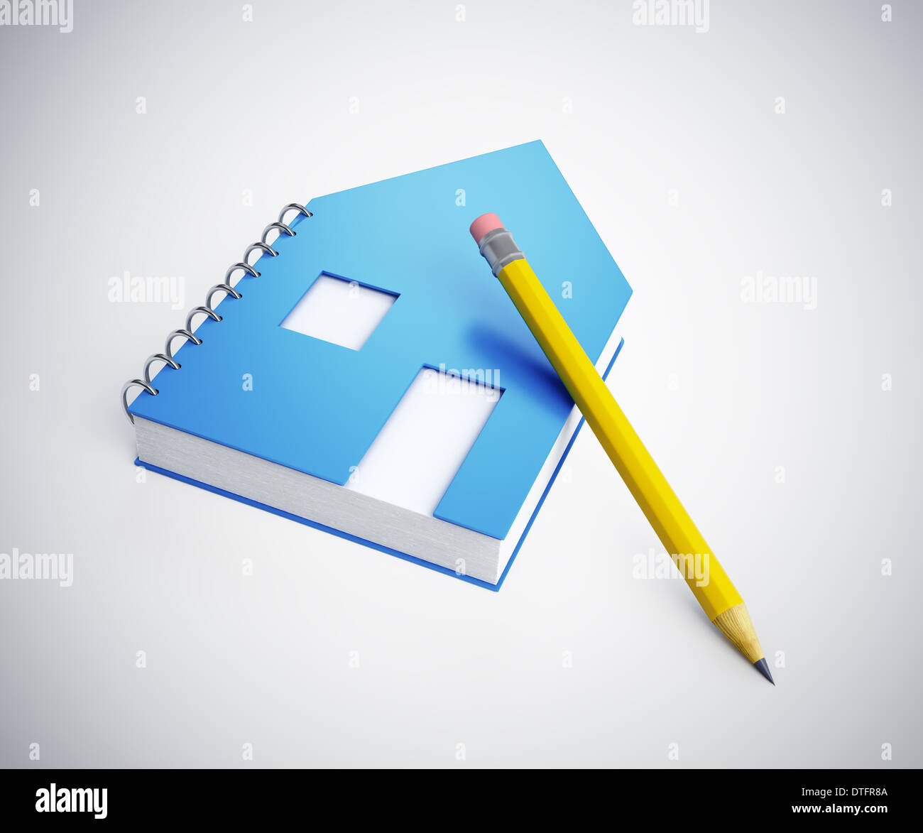 Notepad with pencil for writing notes and home shape on housing plan ...