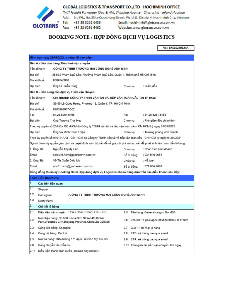 Amc - Booking Note | PDF