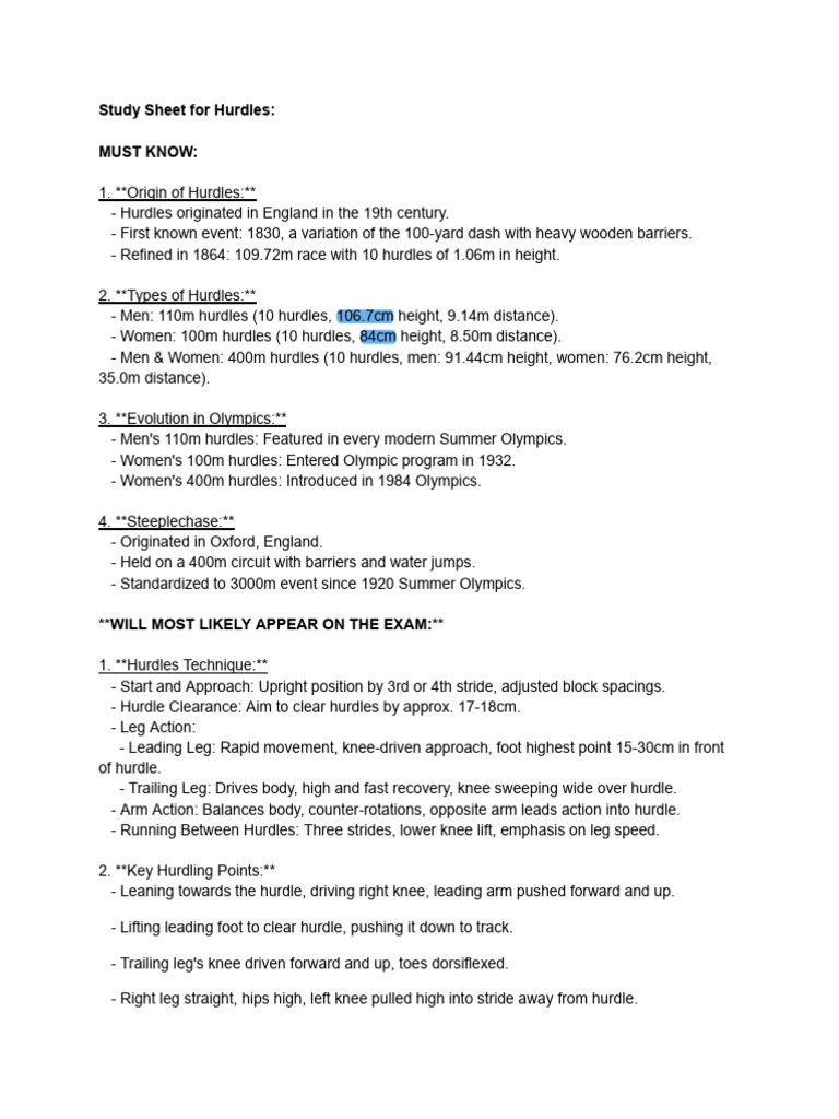 Athletics 5 - Great notes on the Athletic topic of EDTE353 - EDTE3530 ...