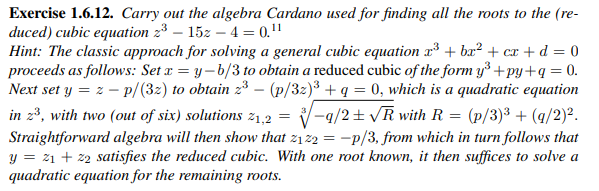 Solved Exercise 1.6.12. Carry out the algebra Cardano used | Chegg.com