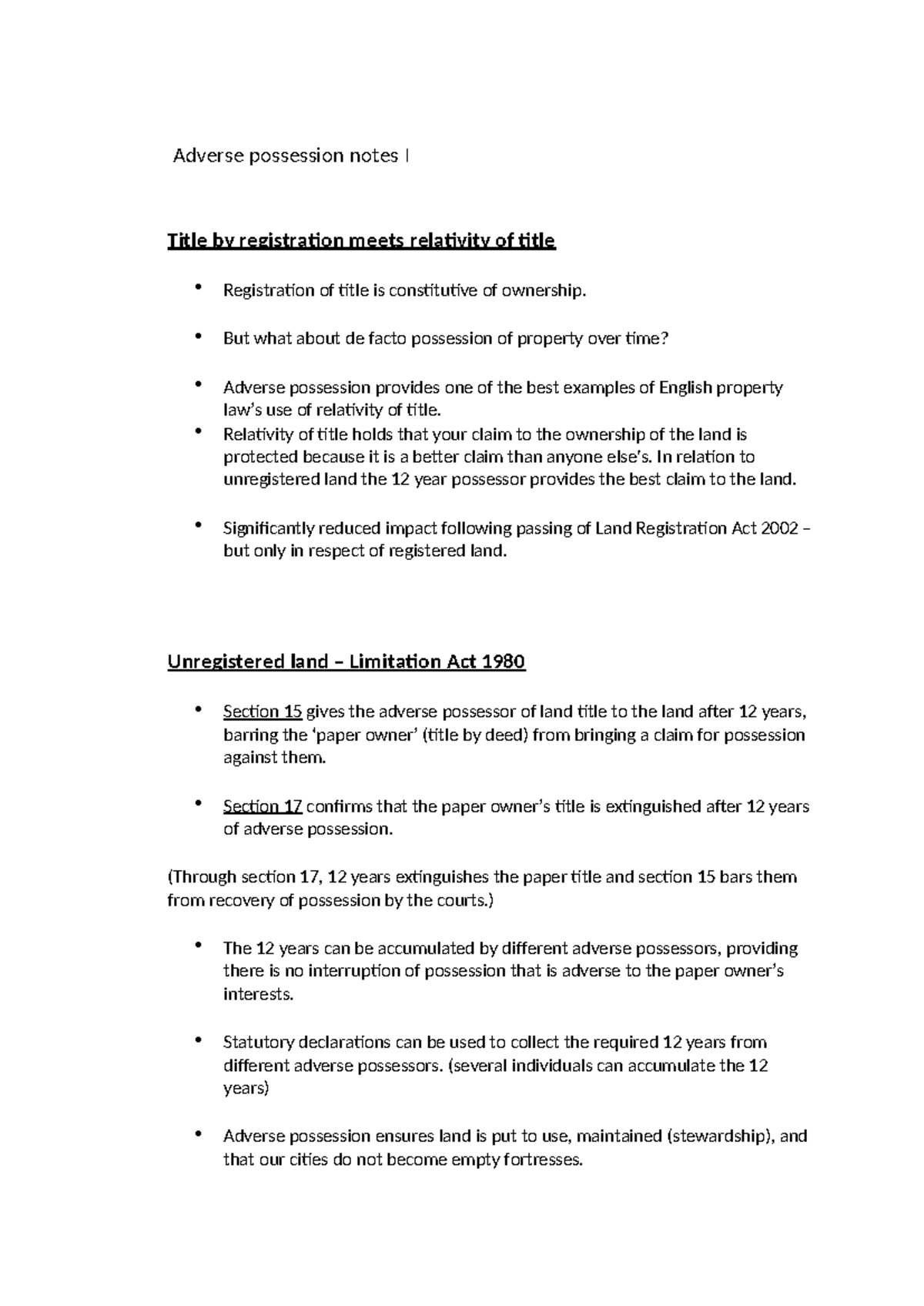 Adverse Possession Notes I: Understanding Title Registration and Claims ...