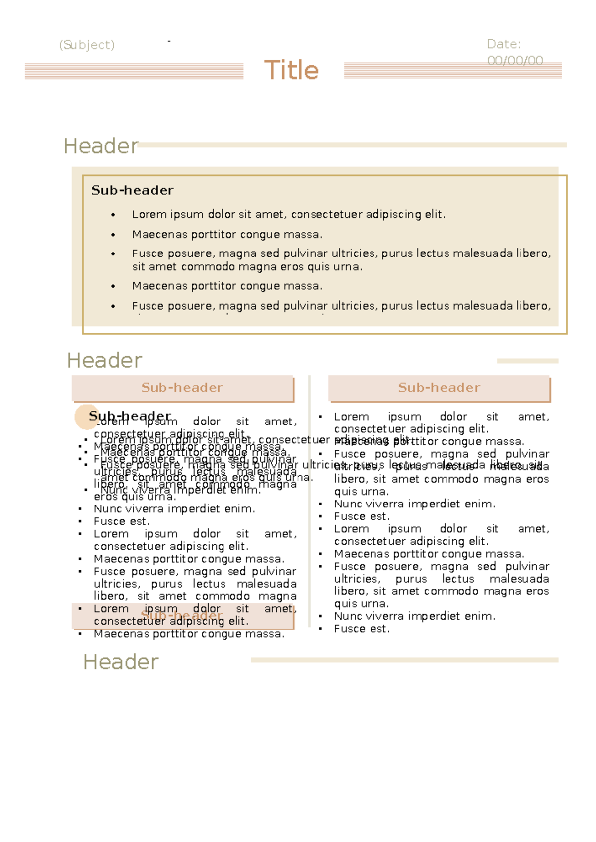 Ms Word Notes Template 1 - Title (Subject) Header Sub-header Lorem ...