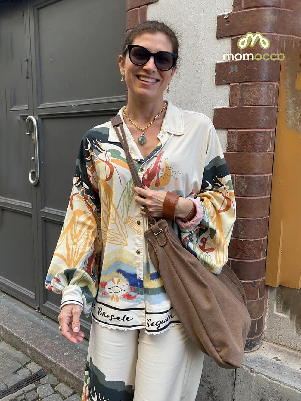 Modern Unique Satin Landscape Print Loose Oversized Shirt