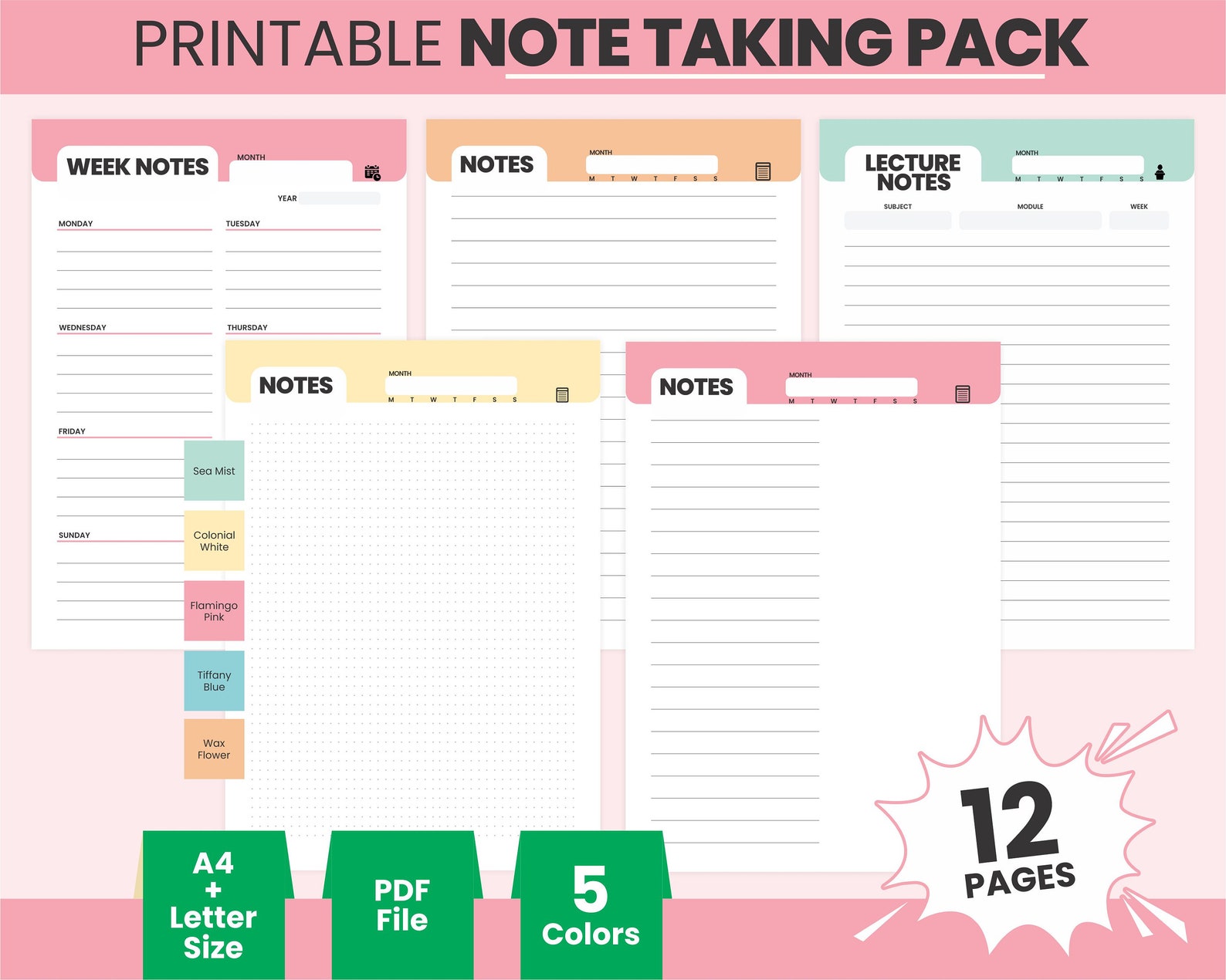 Note Taking Template Printable PDF | Student Notes Planner | Lecture ...