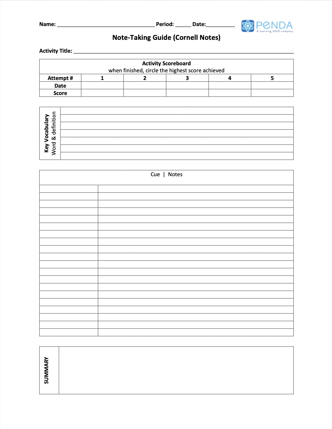 Note-Taking Guide: Cornell Notes (Two-Column) – Penda Learning