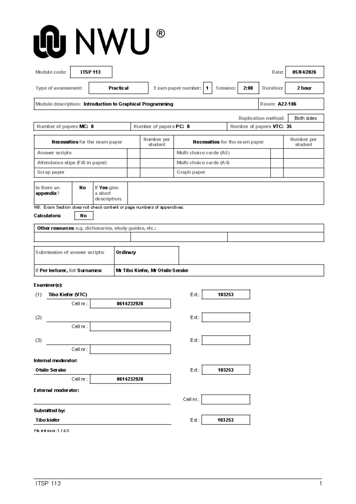 ITSP 113 Practical Exam Paper: Introduction to Graphical Programming ...