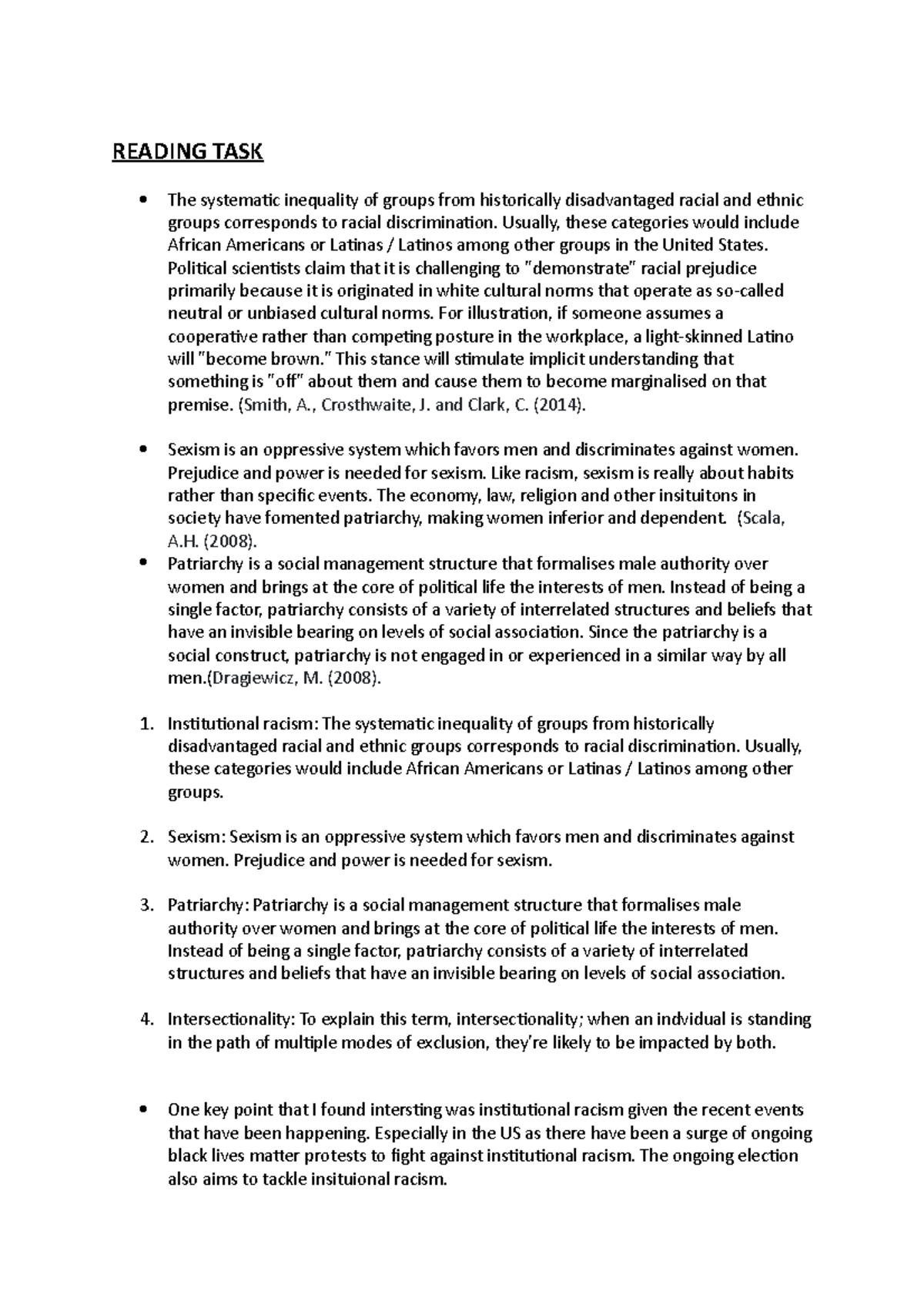 PIA 5 - NOTES - READING TASK The systematic inequality of groups from ...