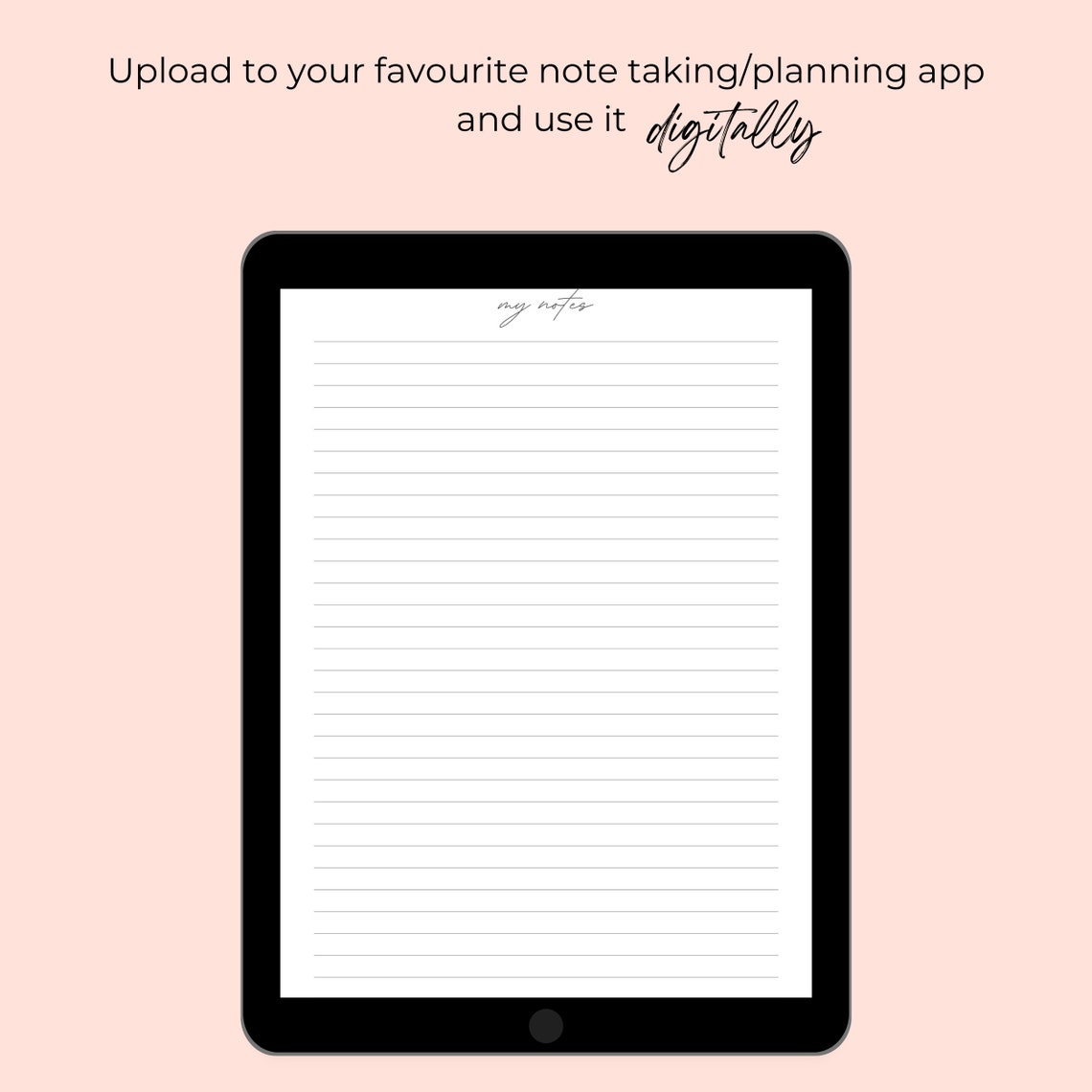 Notes Page Printable, Lined Note Paper, Notes Page Planner, Printable ...